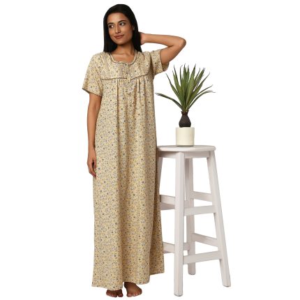 JSS 12075 – Printed Poly-Viscose Nighty for Women – Round Neck, Half Sleeves