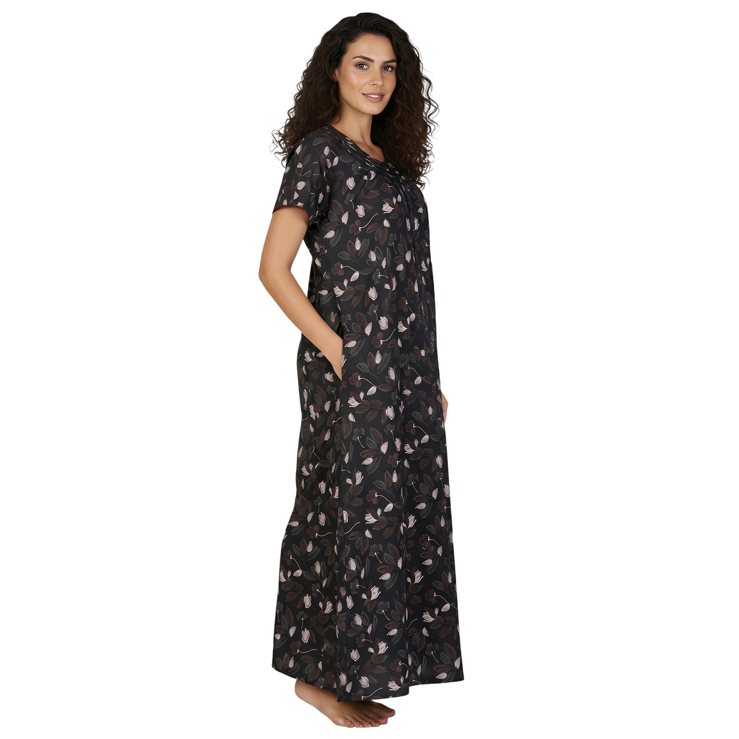 JSS 12083 – Printed Poly-Viscose Nighty for Women – Round Neck, Half Sleeves