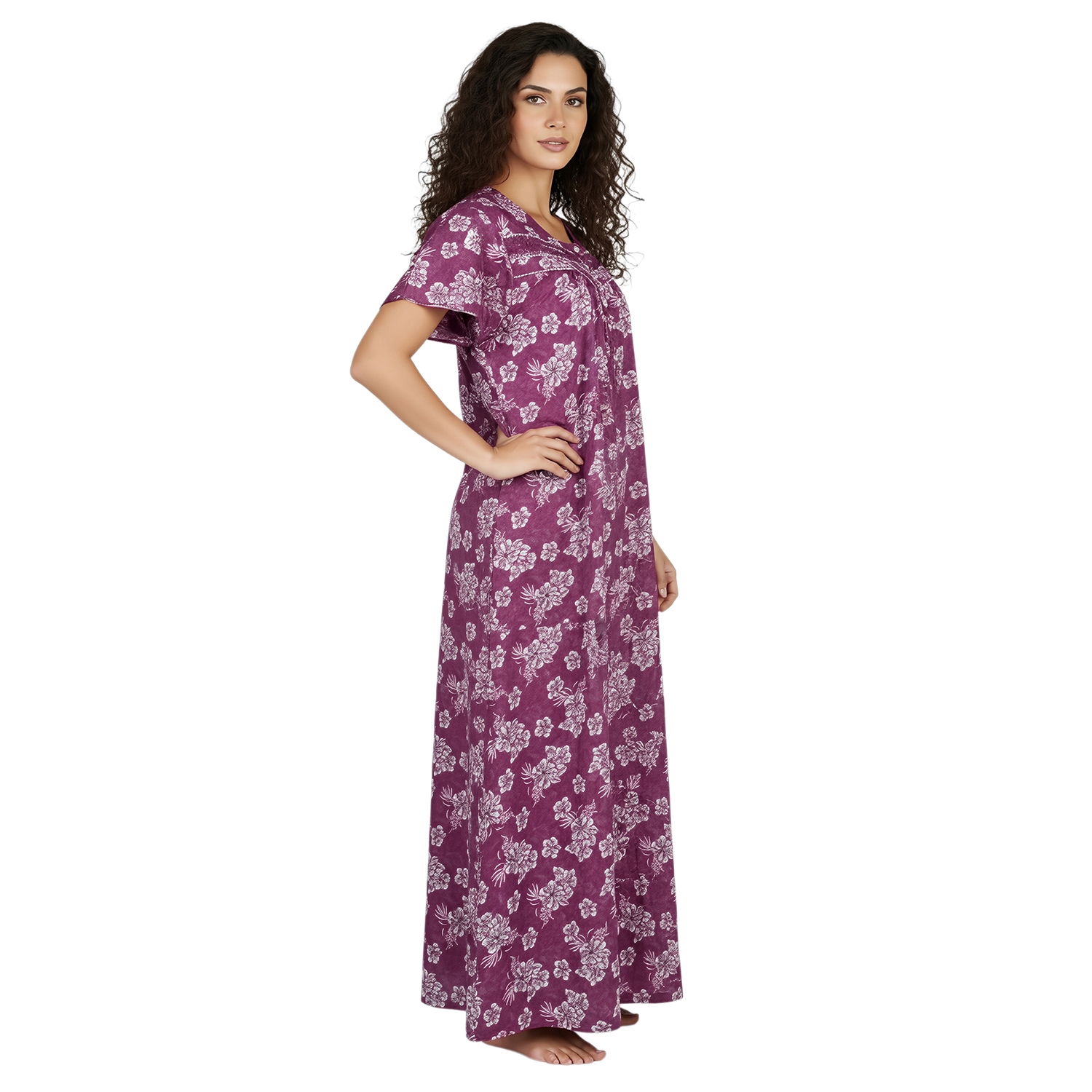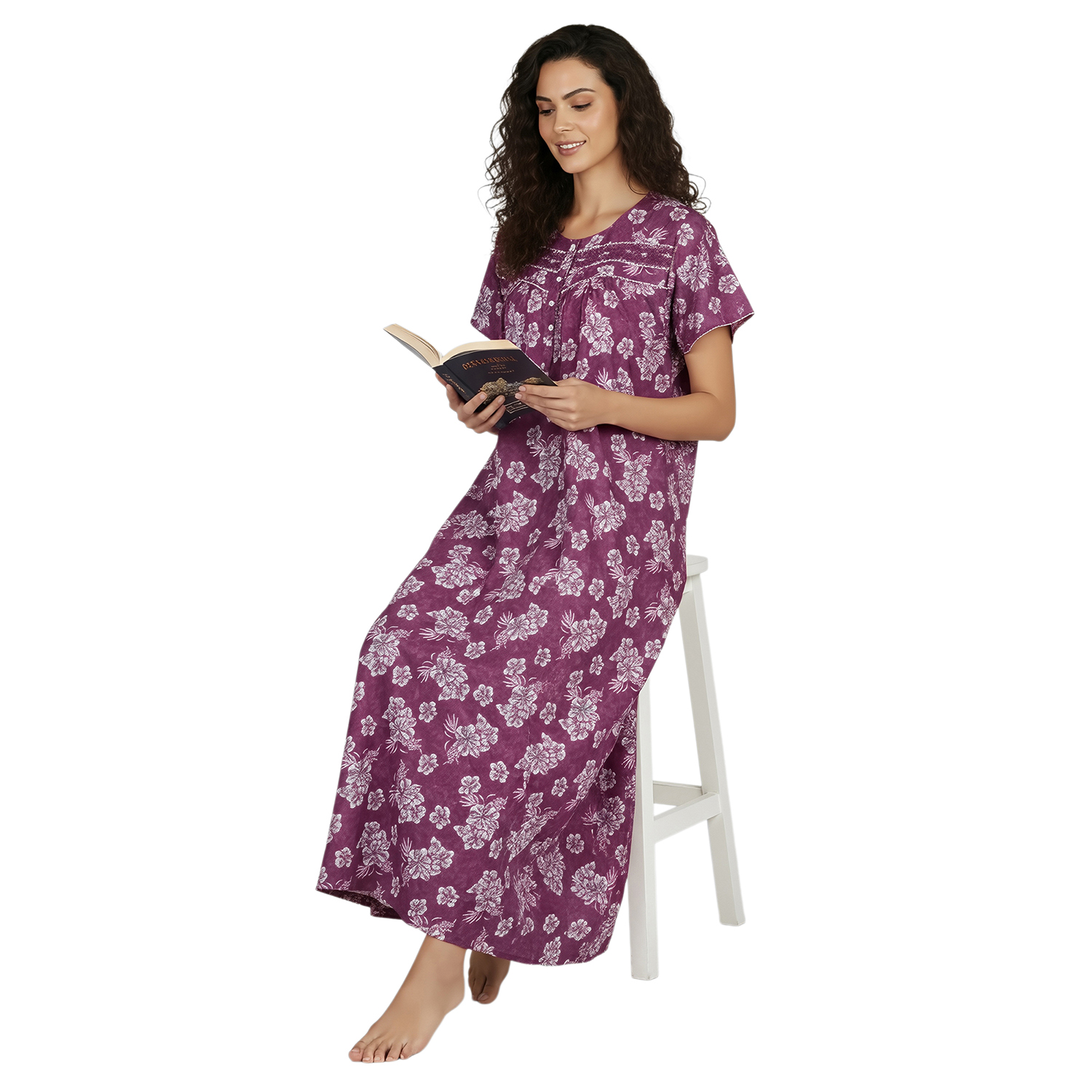 Experience the gentle comfort of woven poly viscose. Crafted to feel smooth, airy, and lightweight, these nighties keep you cool and relaxed through the night. The easy, relaxed silhouette makes them perfect for peaceful sleep and slow, cozy mornings.