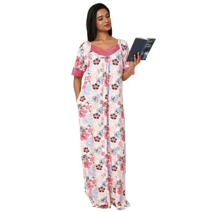 SCH460913 – Printed Poly-Viscose Nighty for Women – Square Neck, Half Sleeves